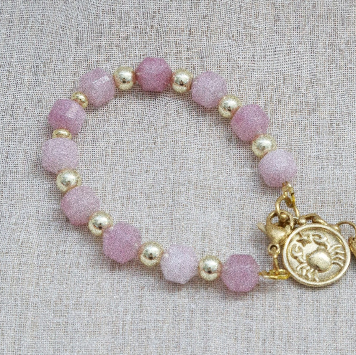 Ce bracelet talisman est spécialement imaginé pour les natifs du Cancer, signe d’eau sensible, protecteur et tourné vers la douceur du foyer.