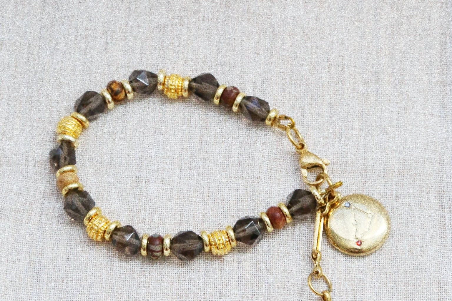 Bracelet Astro Capricorne – Quartz Fumé & Perles Dorées