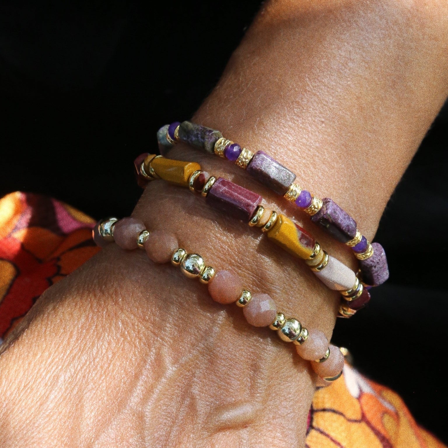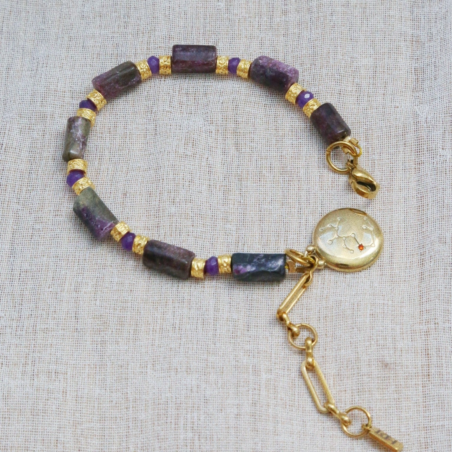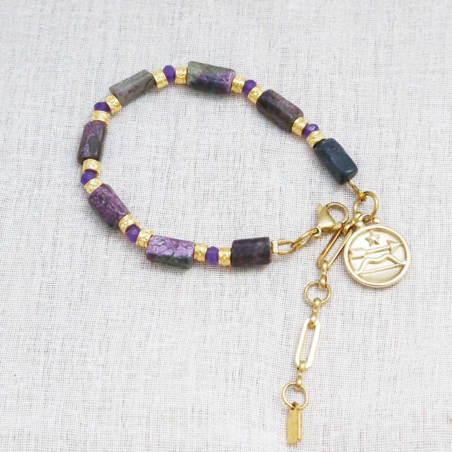 Bracelet Astro Sagittaire – Améthyste & Perles Dorées