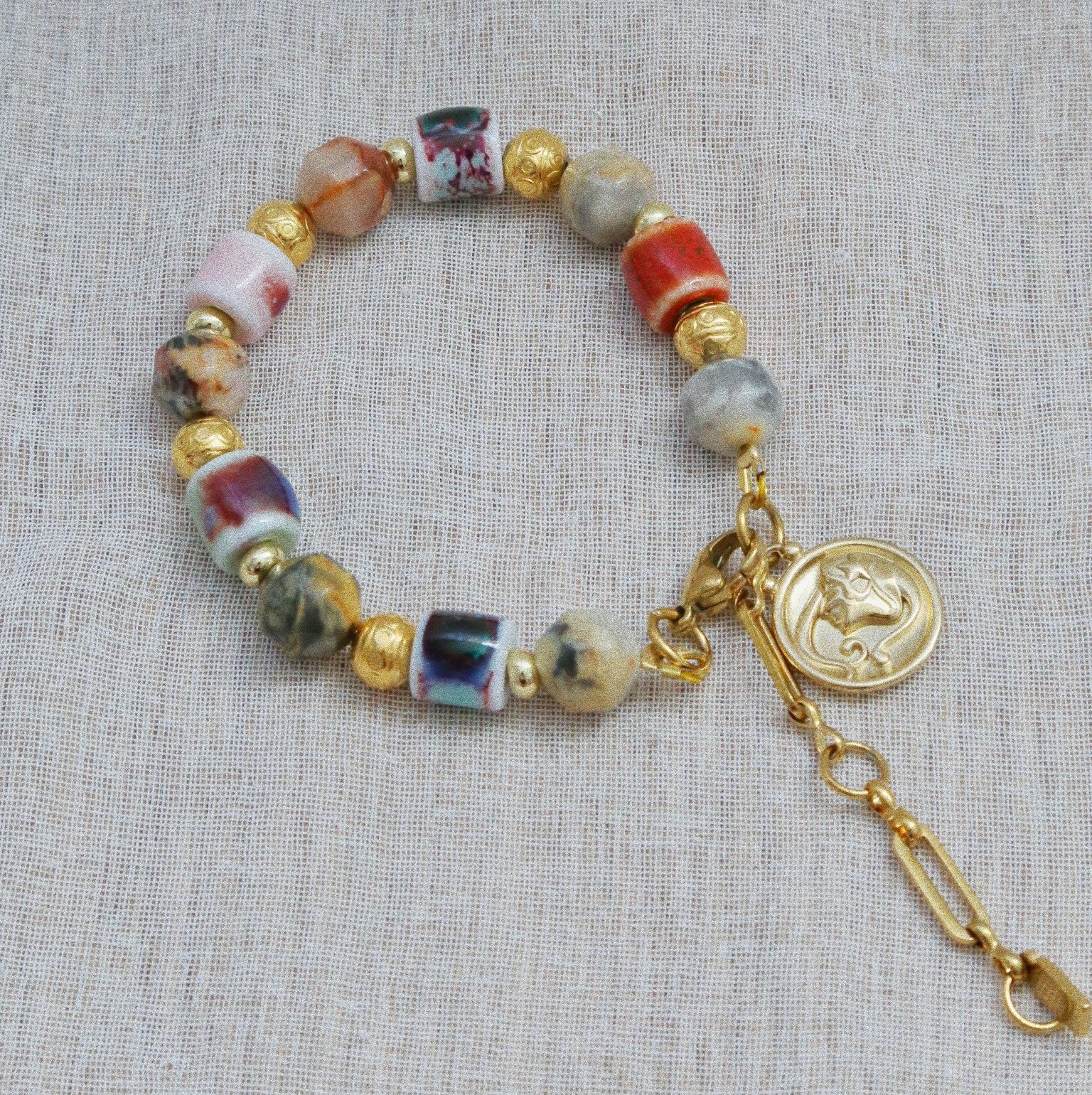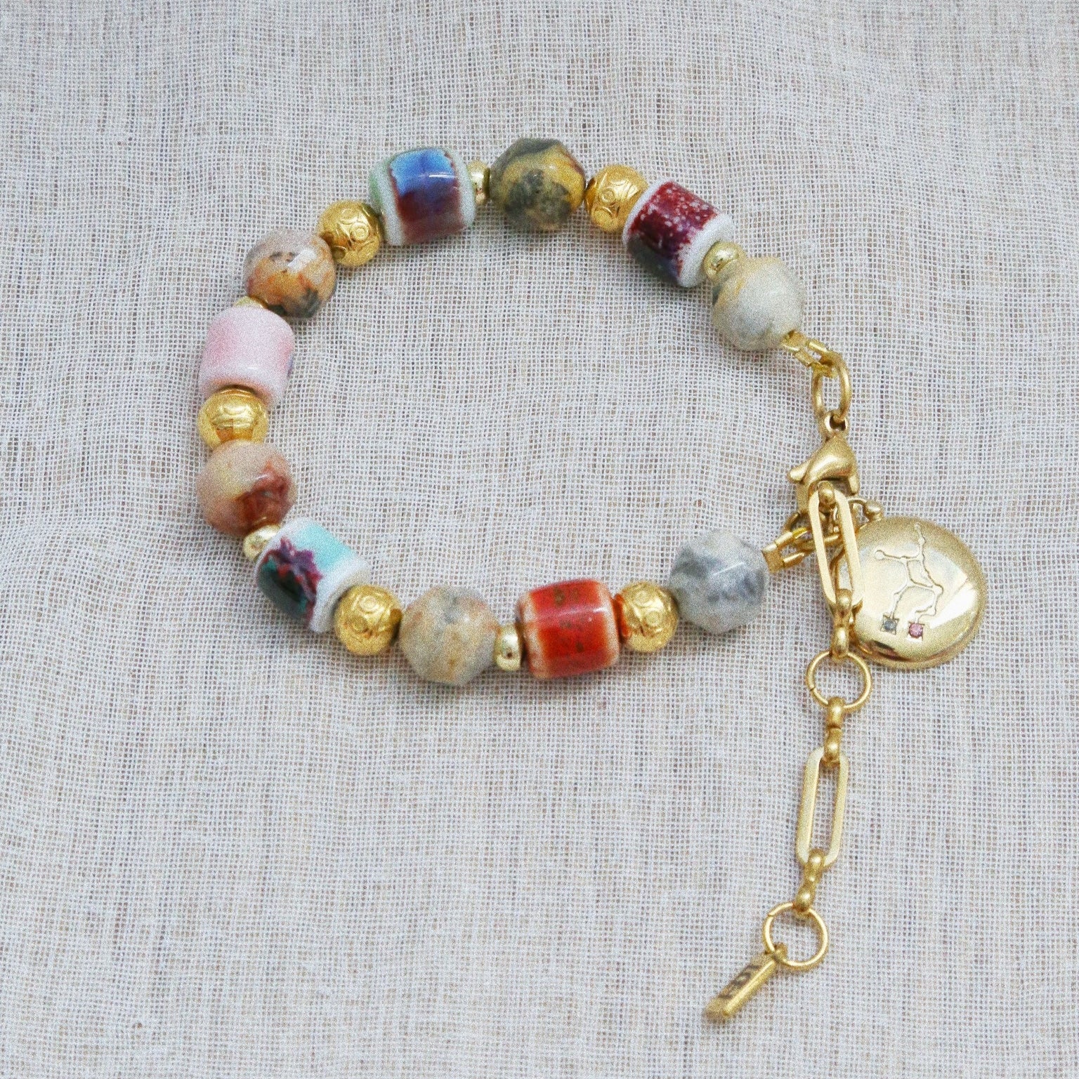 Bracelet Astro Vierge – Agate Folle, Perles Céramiques & Dorées