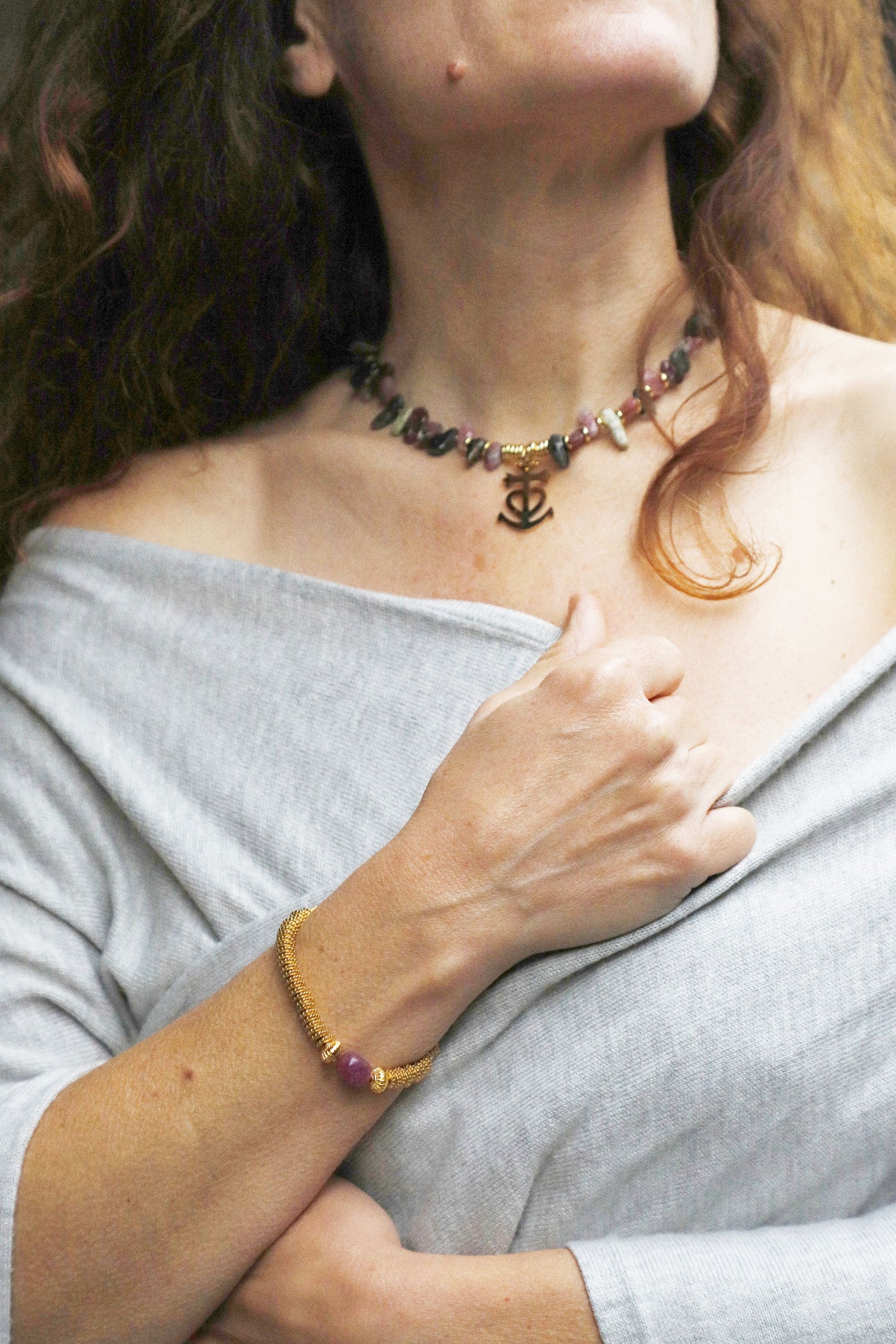 Chaque galet, façonné par la nature, évoque la force des éléments et la sérénité des paysages bruts. Ensemble, ils créent un bijou empreint de douce puissance, rappelant la connexion à la terre et la beauté de l’imperfection naturelle.