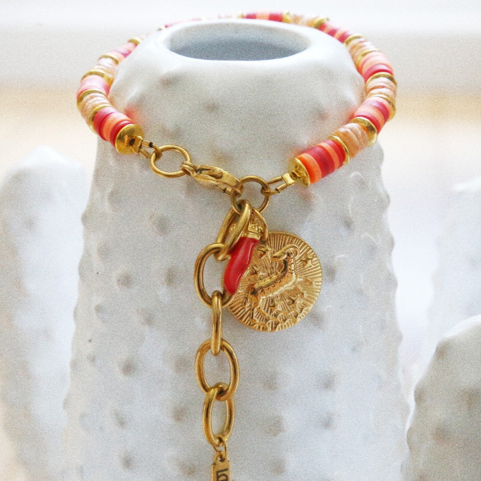 🎨 Perles heishi en polymère – Bohèmes, légères et pleines de caractère, elles rendent ce bracelet confortable et stylé, parfait pour suivre le rythme effréné du Bélier.