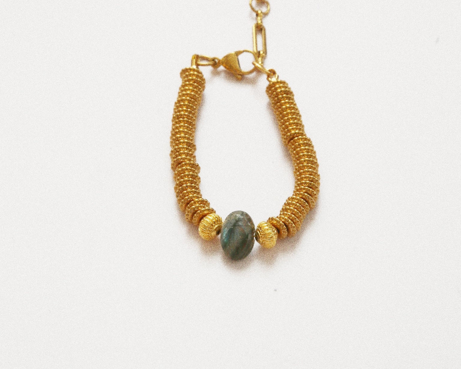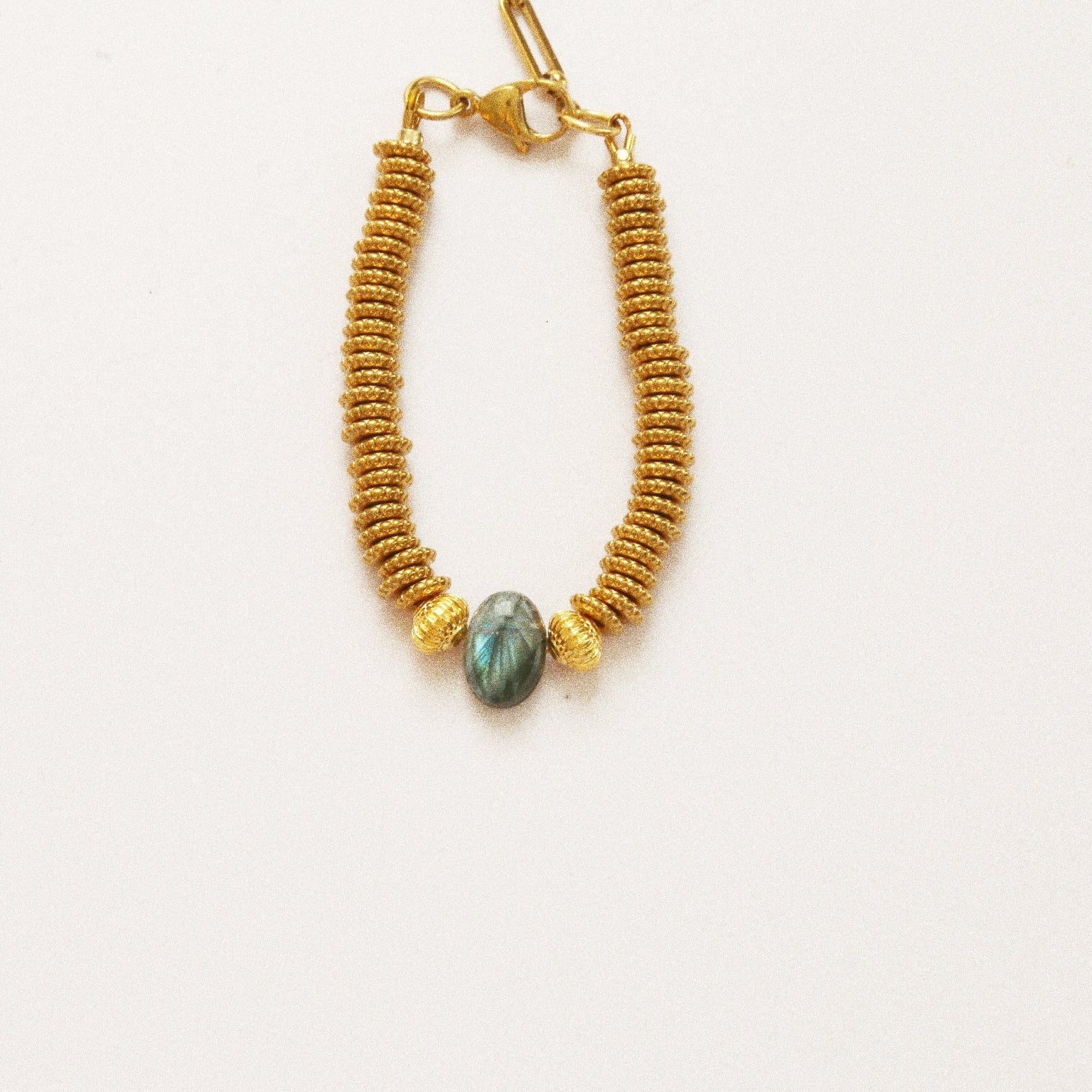 🪲 Bracelet Java Scarabée – Labradorite & Acier Doré