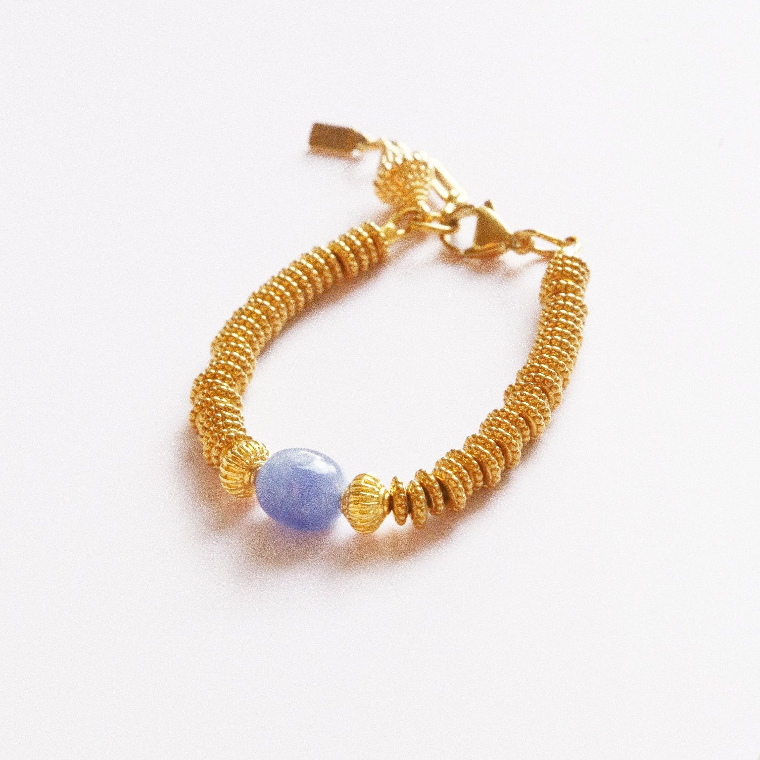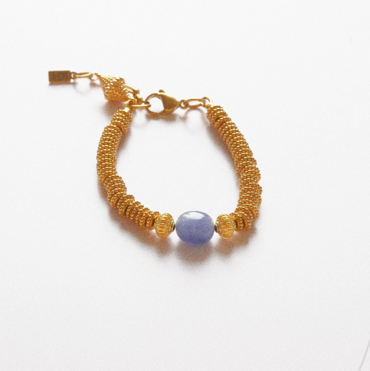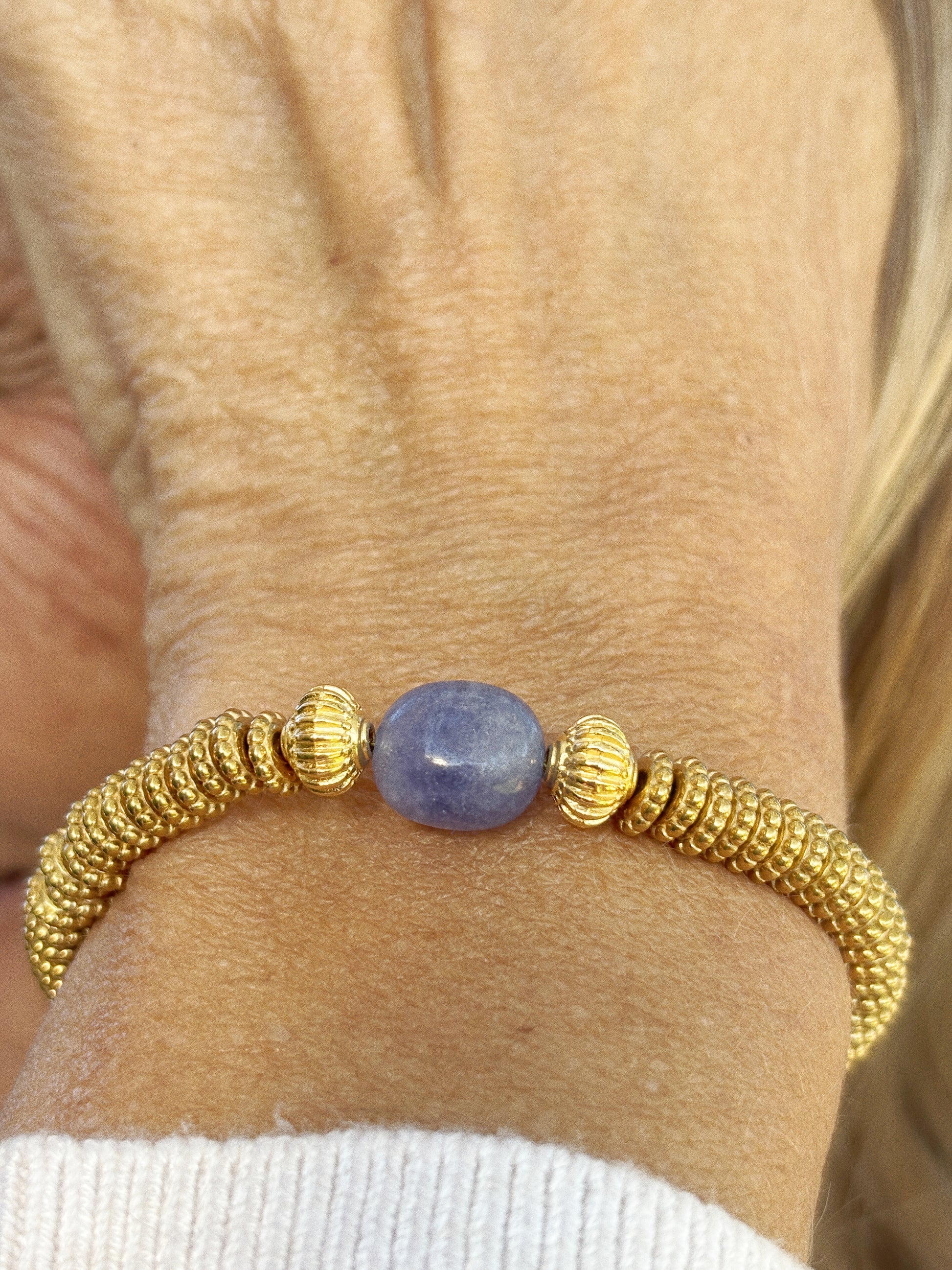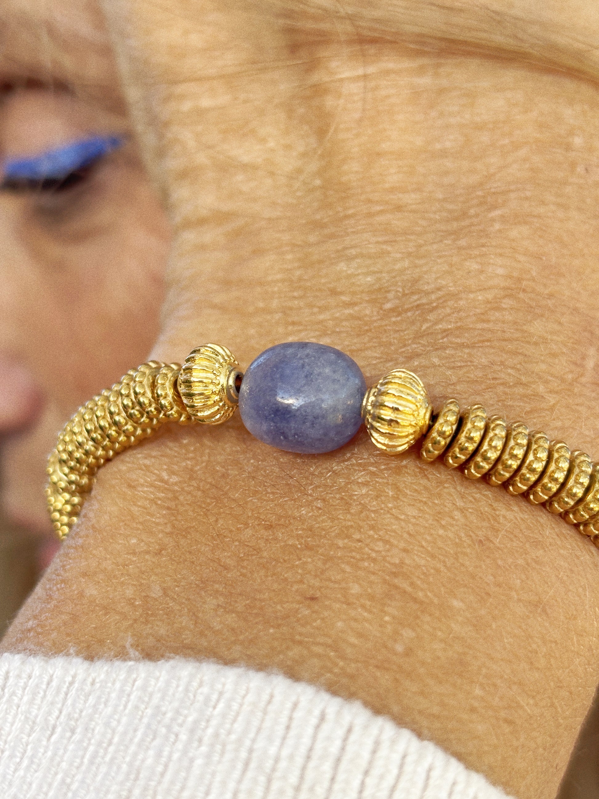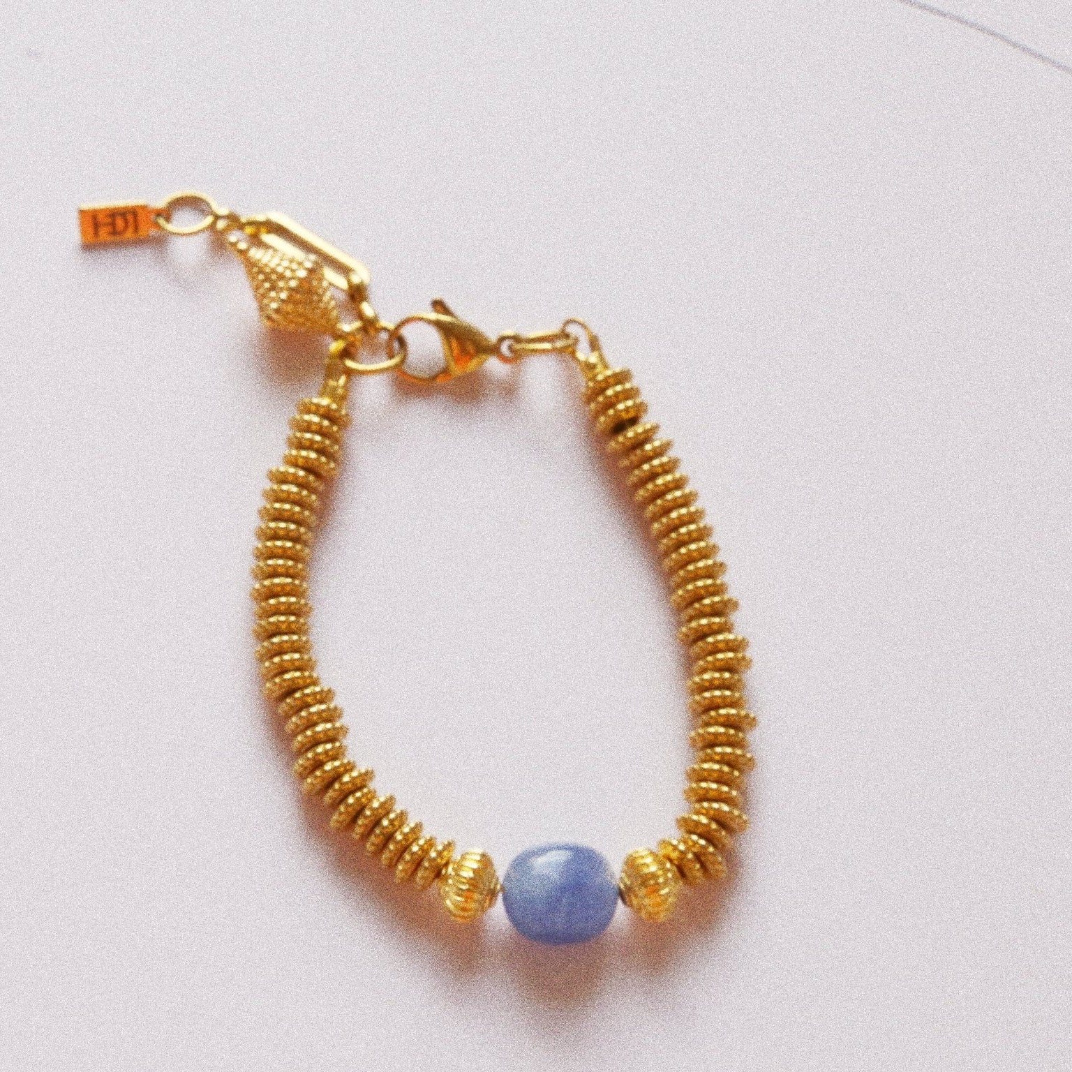 💙 Bracelet Henriette – Tourmaline Bleue & Acier Doré