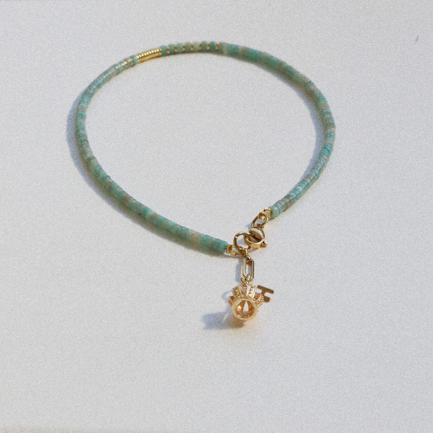 Collier Henriette 2-7 – Amazonite & Couronne Dorée