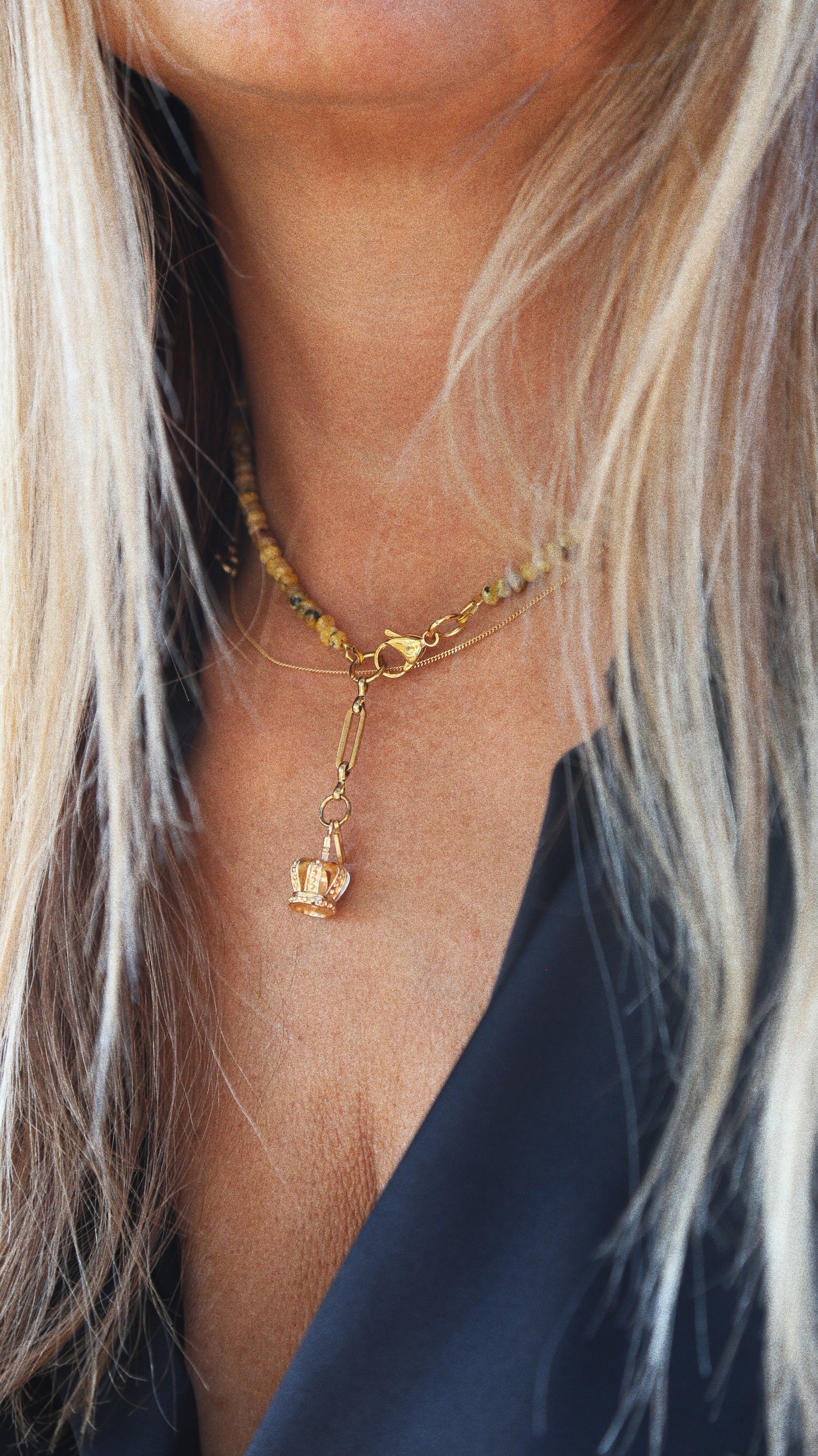 Collier Henriette 2-7 – Jaspe Teinté Jaune Moutarde & Couronne Dorée