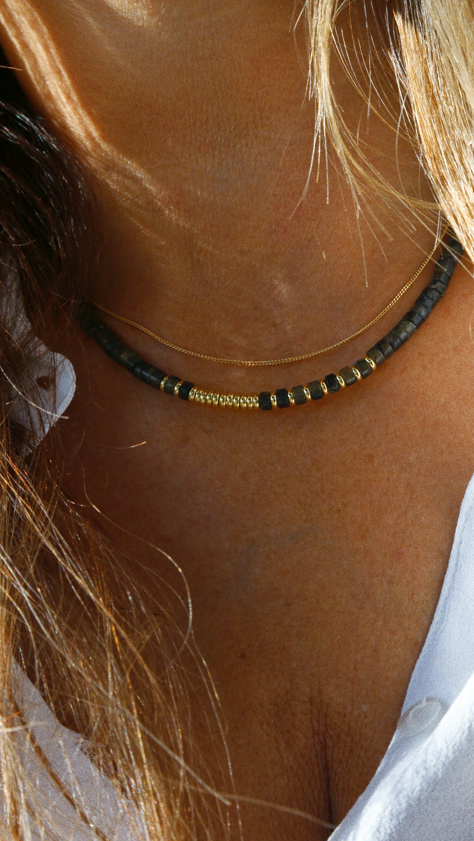 Affirmez votre force et votre élégance avec ce collier, composé de moldavite, pierre de transformation et d’évolution spirituelle. Connue pour stimuler l’élévation de conscience, favoriser le lâcher-prise et amplifier les énergies de guérison, la moldavite aide à se connecter à son chemin intérieur et à attirer des changements positifs dans sa vie.