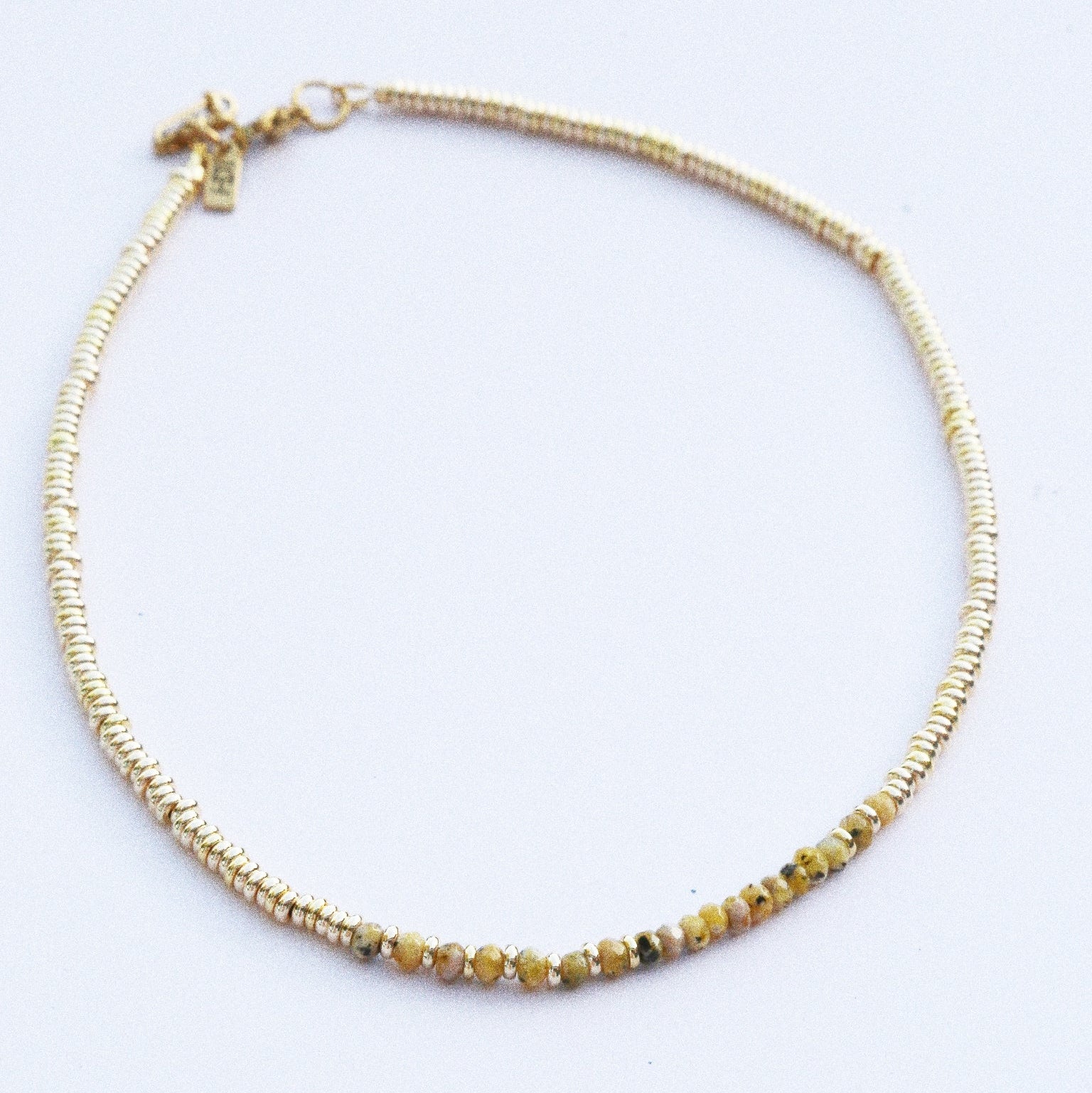 Affirmez votre éclat intérieur avec ce collier composé de perles facettées en agate jaune et de perles dorées 18k, soigneusement assemblées pour créer un bijou à la fois lumineux, délicat et profondément symbolique.
