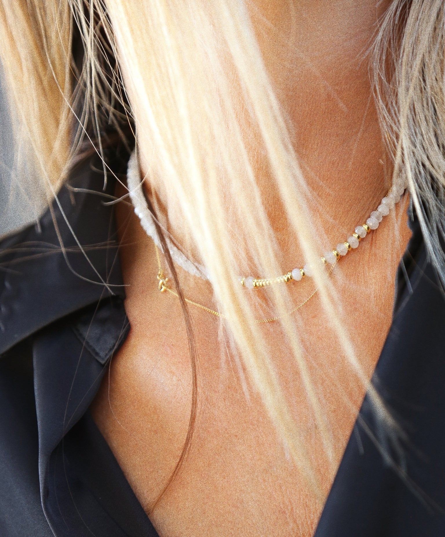 Collier Henriette 2-7 – Quartz Blanc & Couronne Dorée