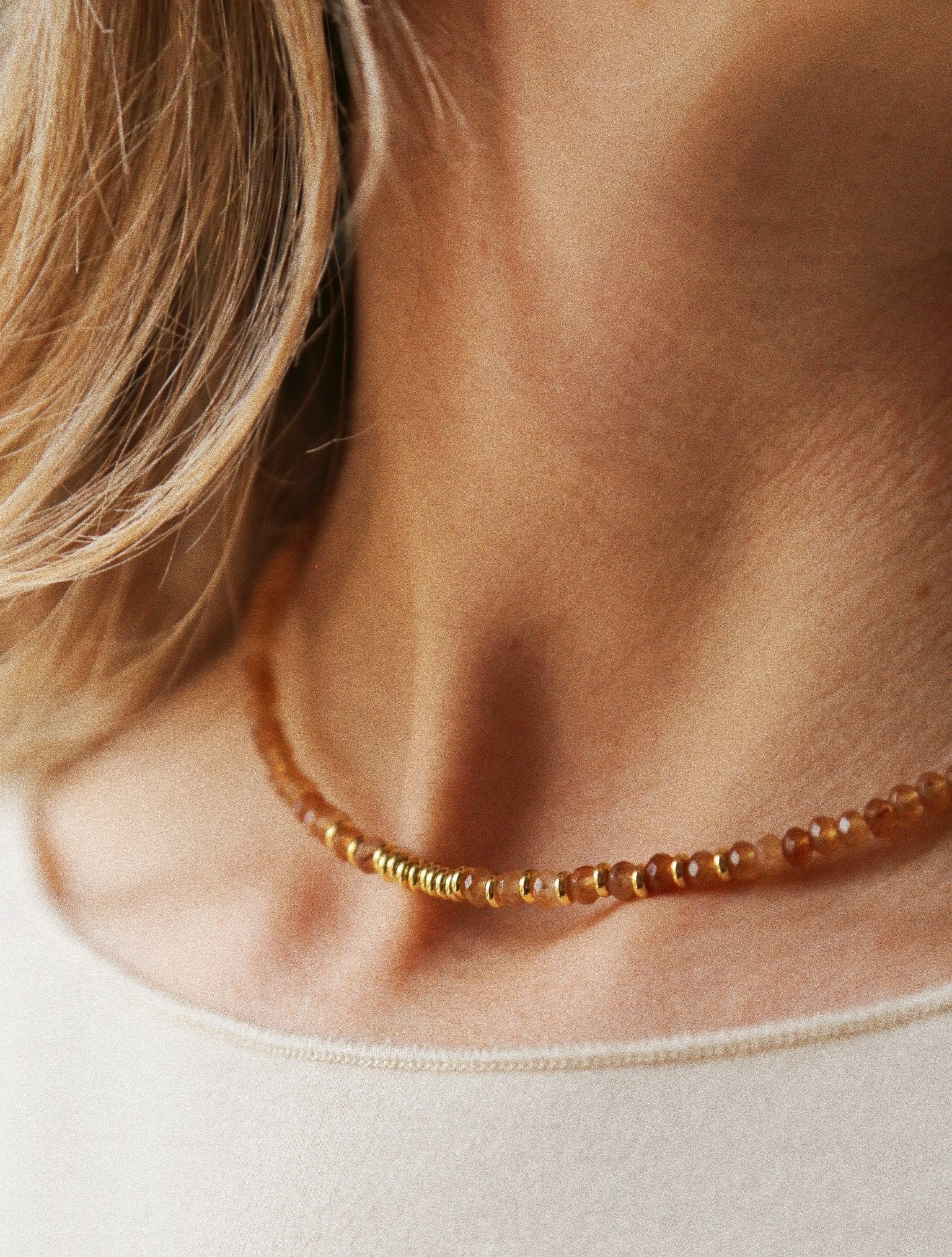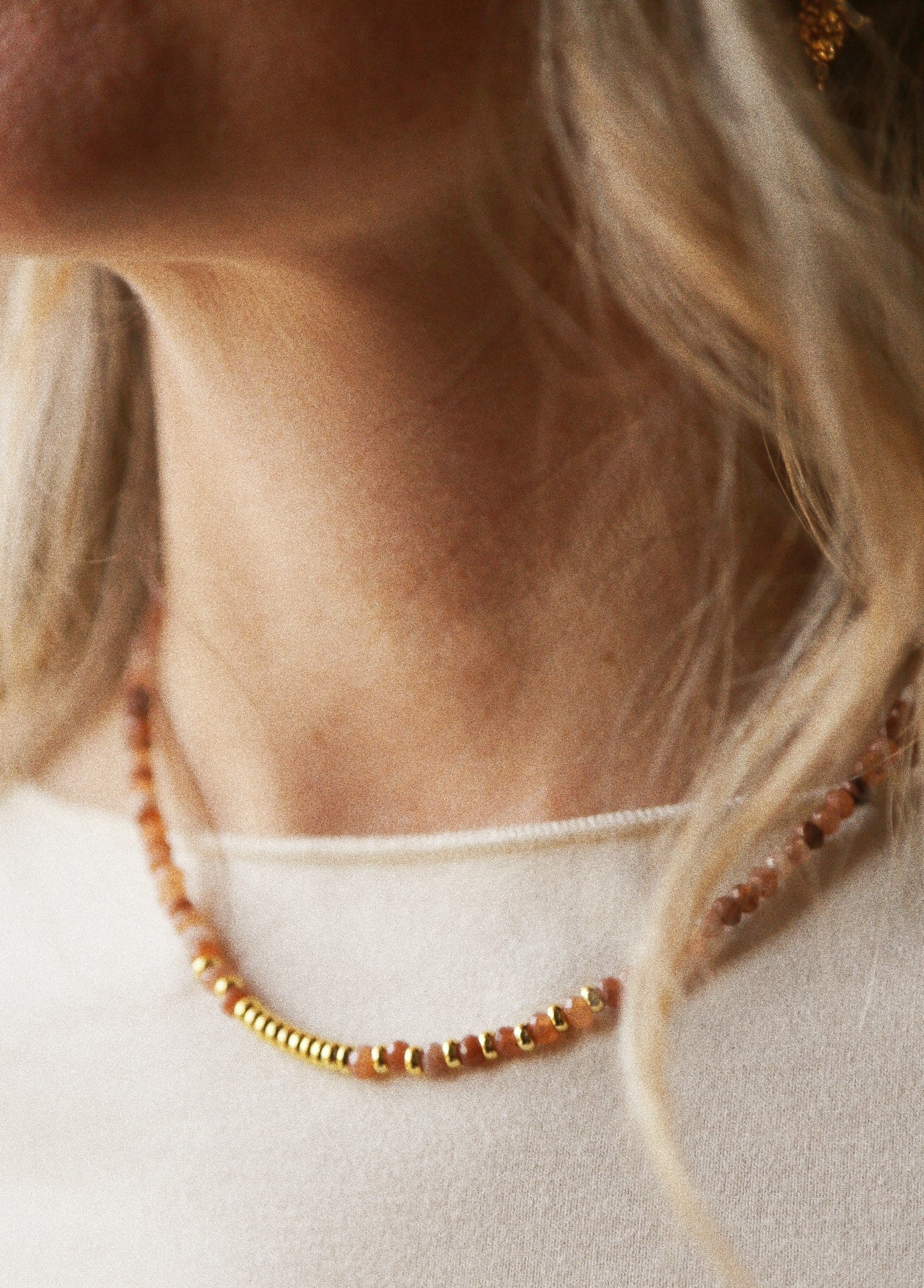Ce collier délicat est composé de cornaline, une pierre solaire et vivifiante, reconnue pour stimuler l’énergie, la créativité et la confiance en soi. Elle accompagne celles qui souhaitent avancer avec élan, courage et joie, tout en restant profondément ancrées.