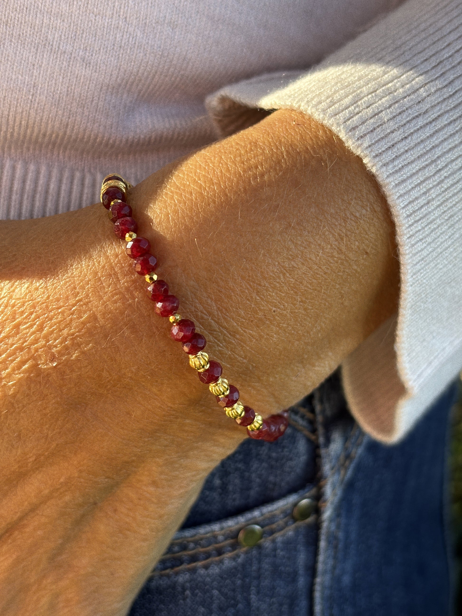 Ce bracelet incarne la force intérieure et la passion du cœur, grâce à l’énergie puissante du grenat.