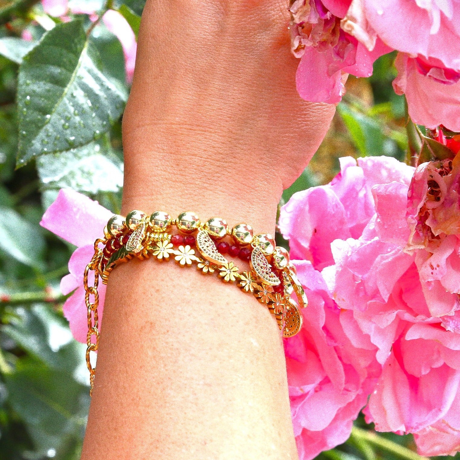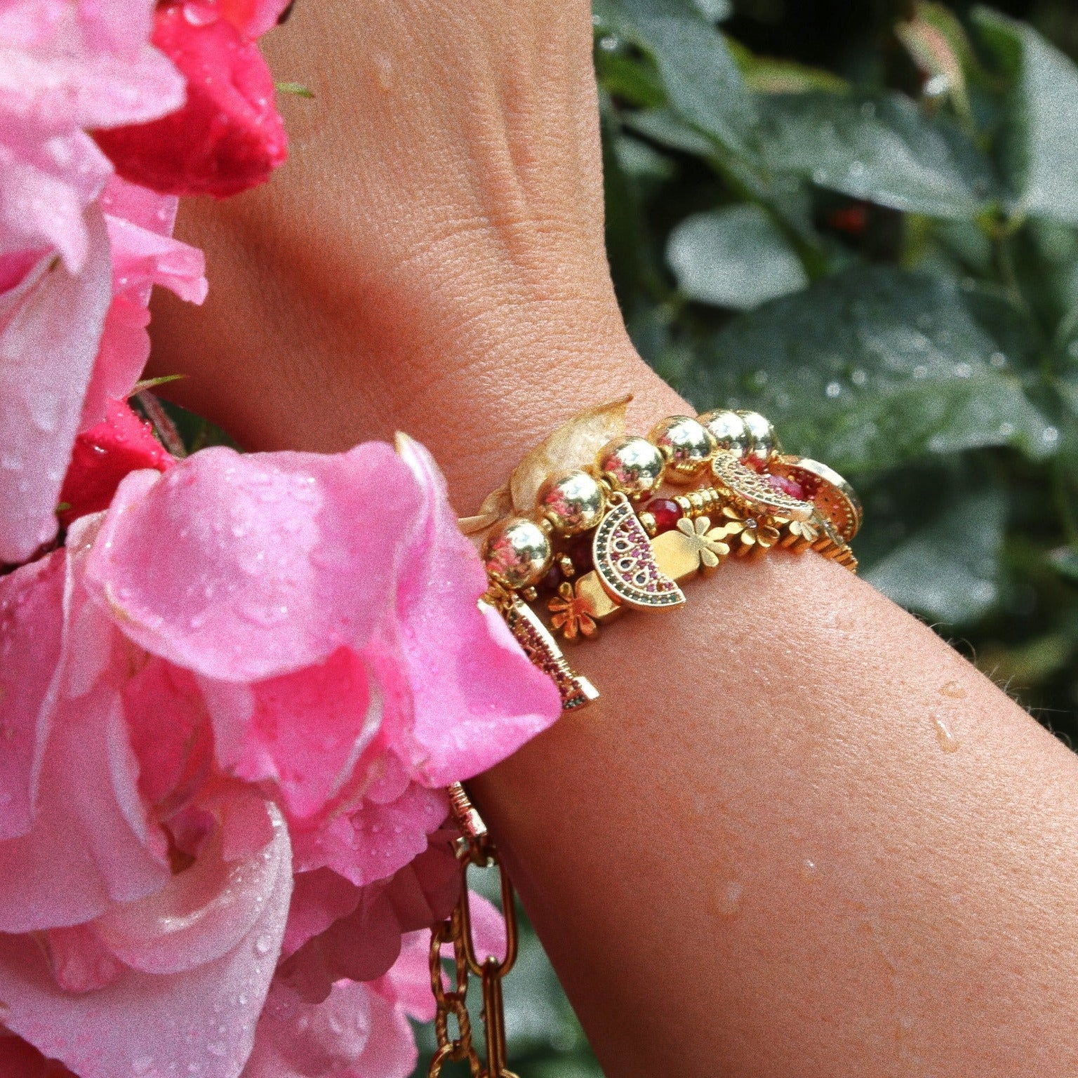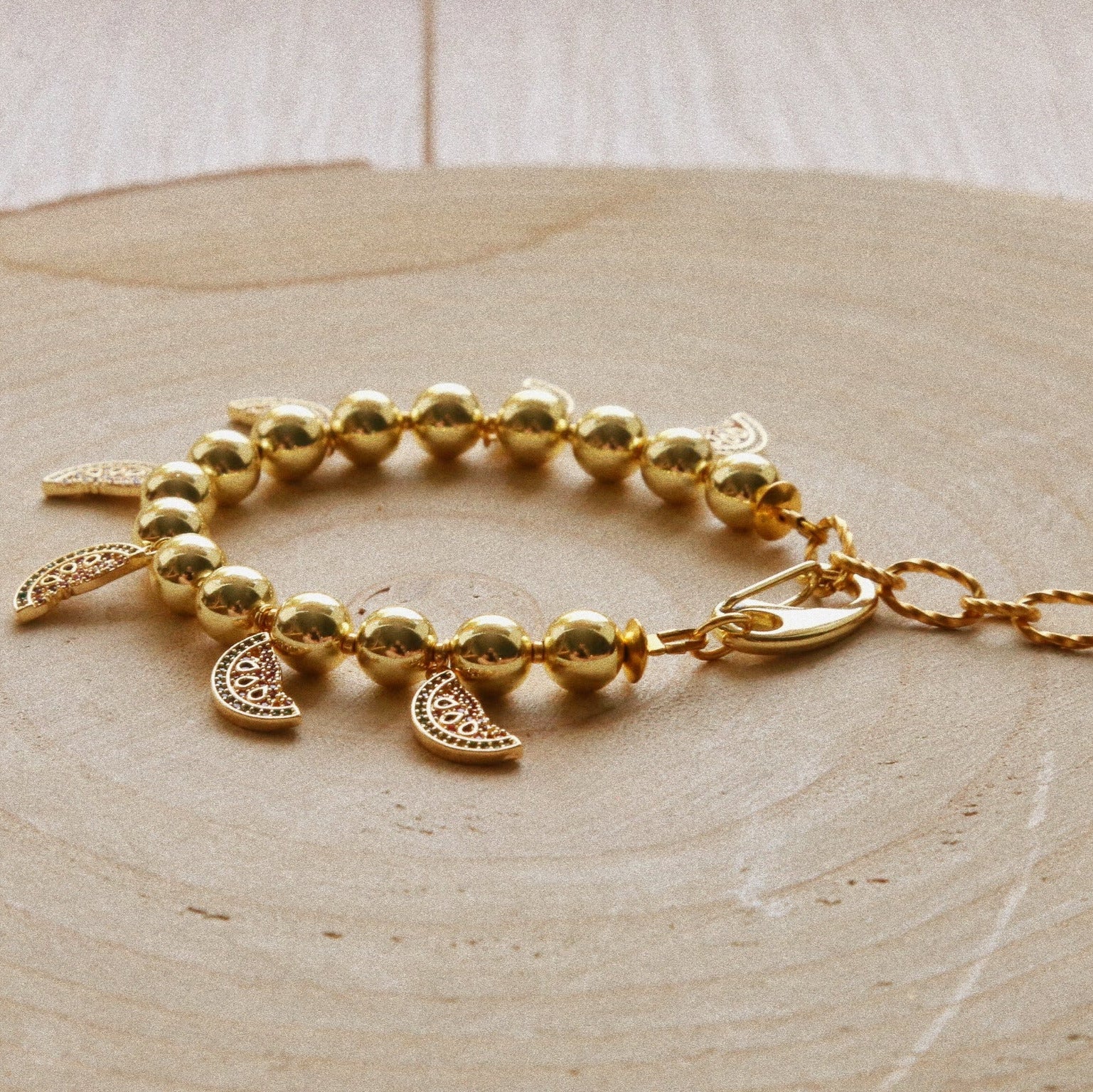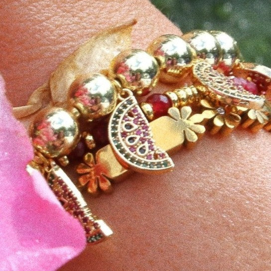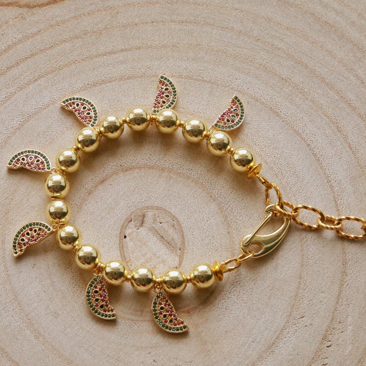 🍉 Bracelet "Douceur d’Été" – Perles dorées & charms pastèques 🍉