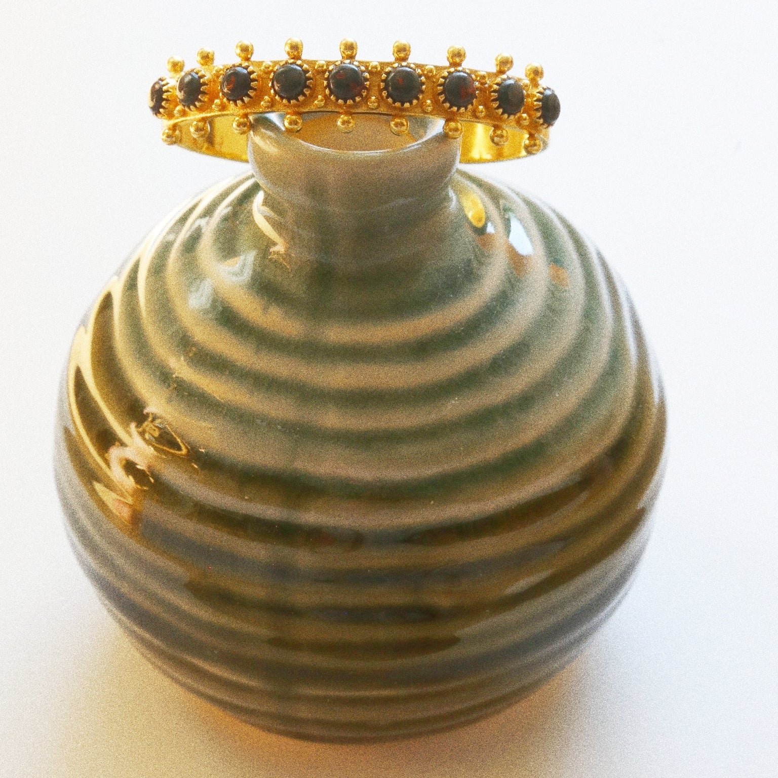 Ce bracelet jonc en pierre de soleil noire, fait à la main à Jaipur, en Inde, allie le savoir-faire artisanal à la magie d’une pierre rare et lumineuse.