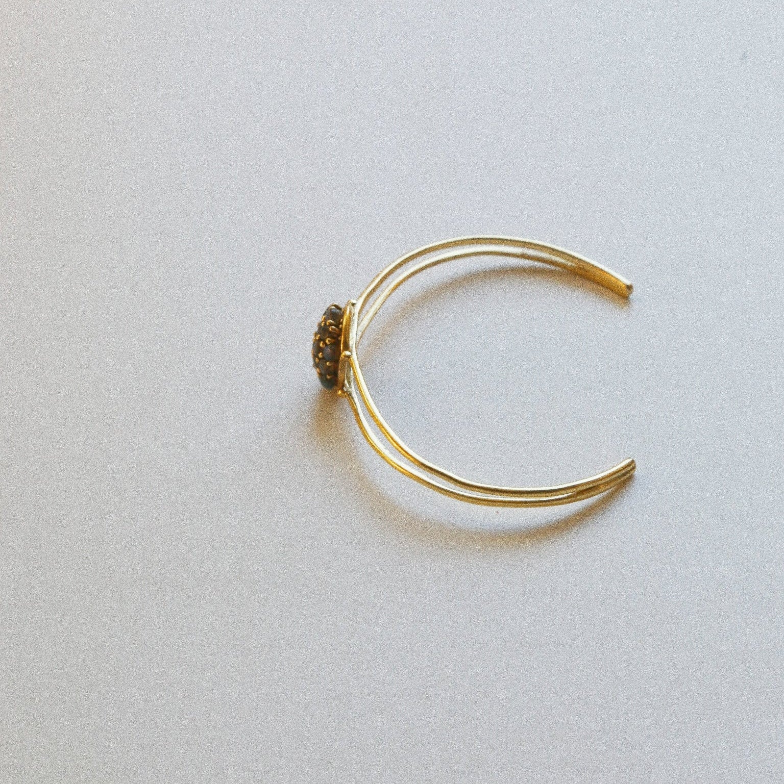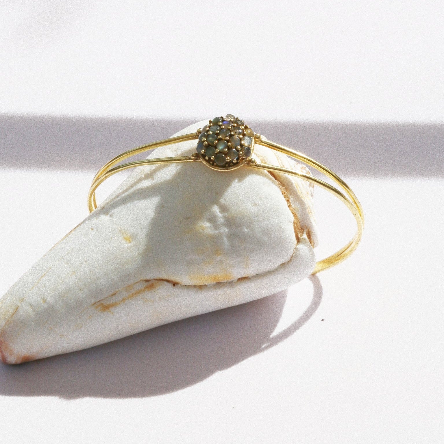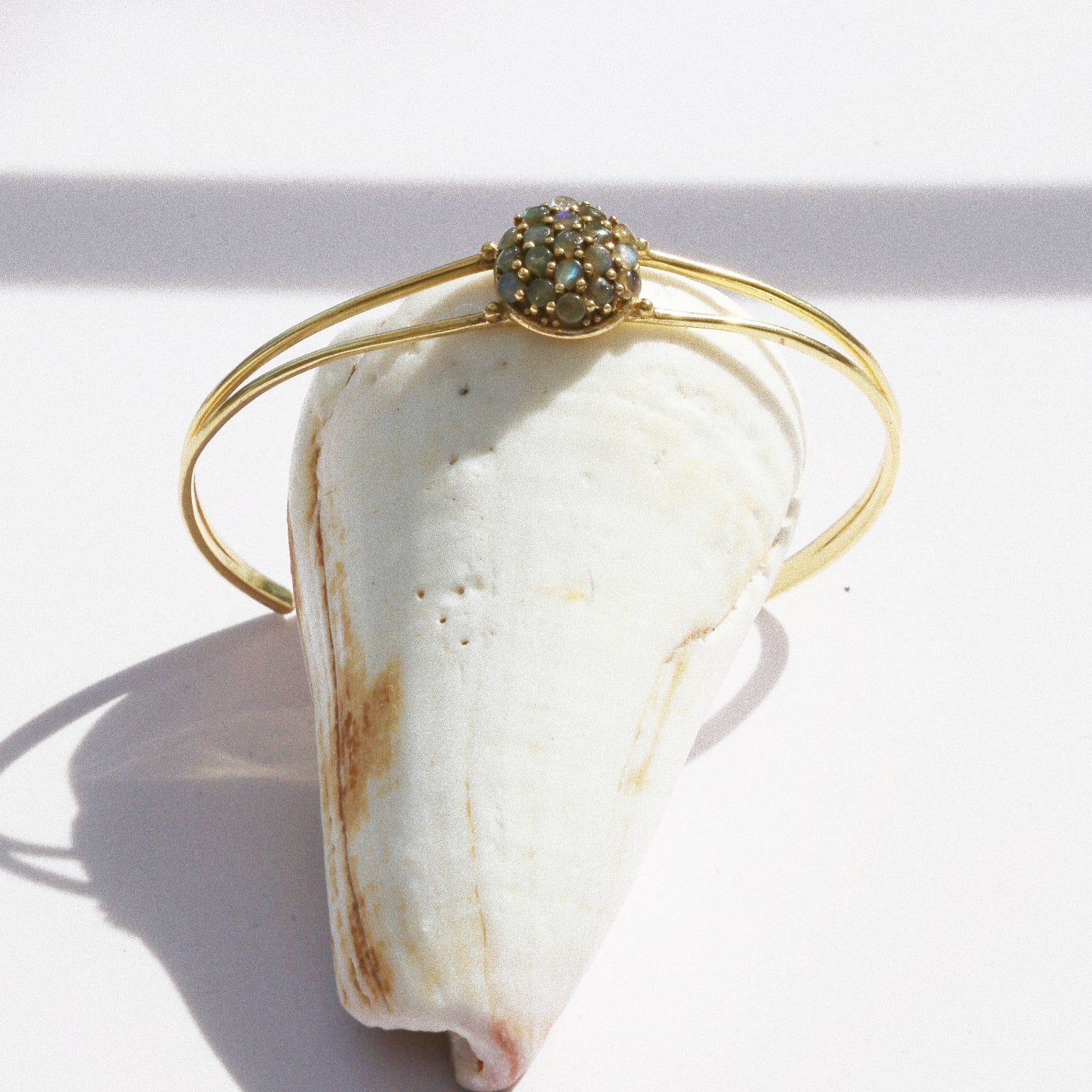 Ce bracelet jonc en labradorite est une création artisanale faite à la main à Jaipur, en Inde, haut lieu de l’art joaillier traditionnel.