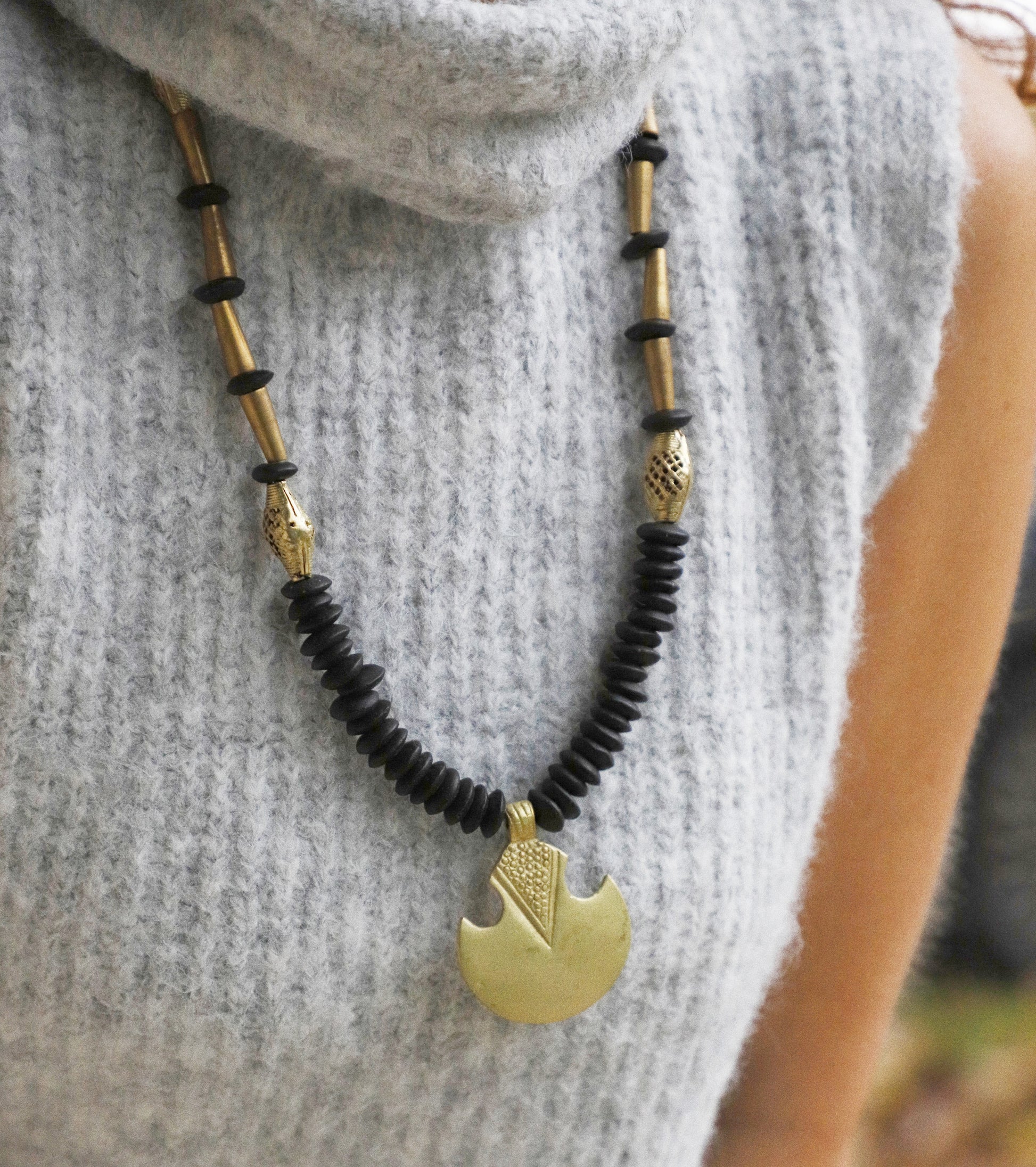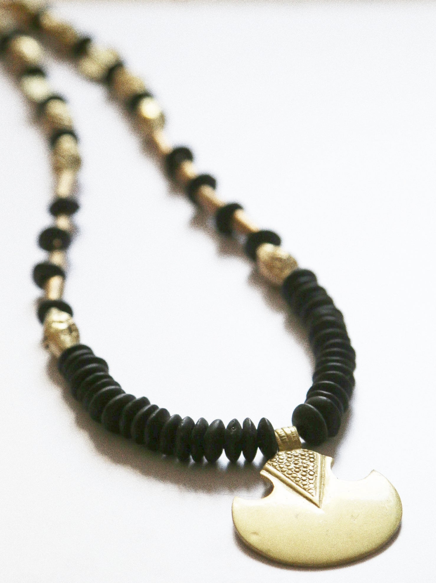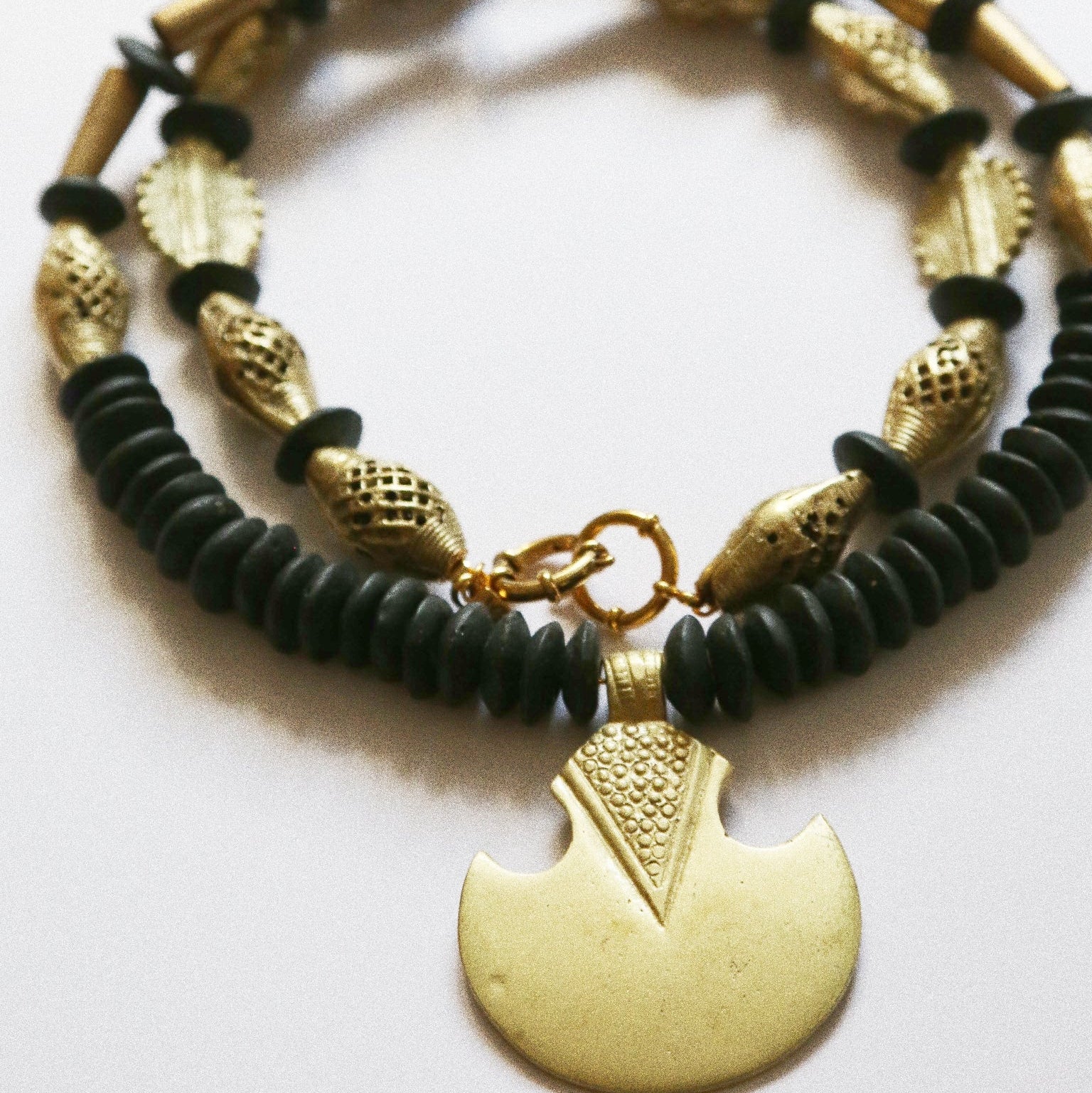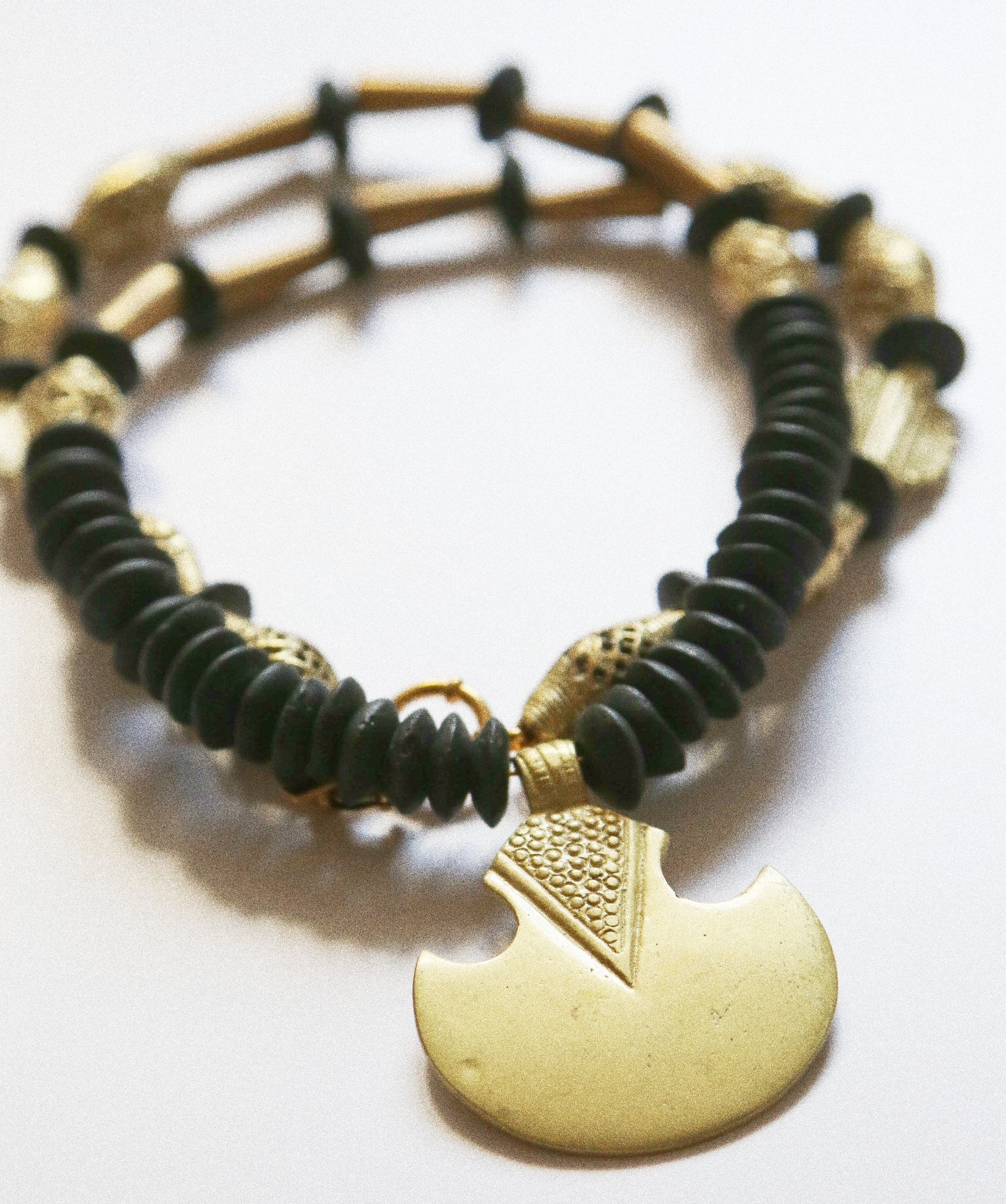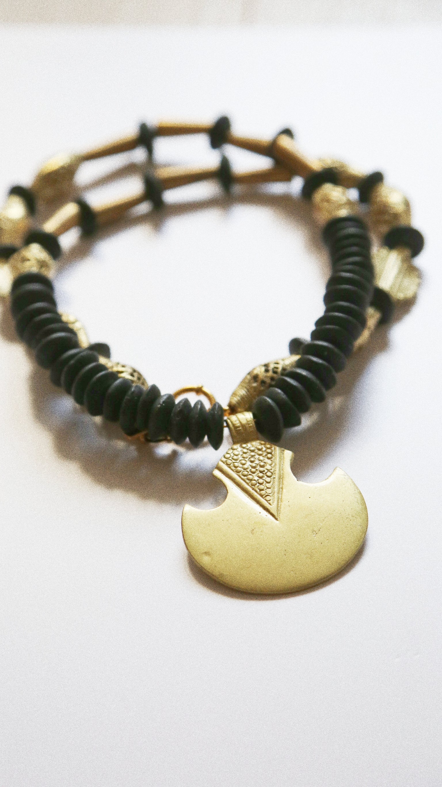 Les perles noires faites à la main évoquent la stabilité et la force tranquille, tandis que le doré apporte chaleur, confiance et lumière. Ensemble, ils créent un équilibre parfait entre ombre et éclat.