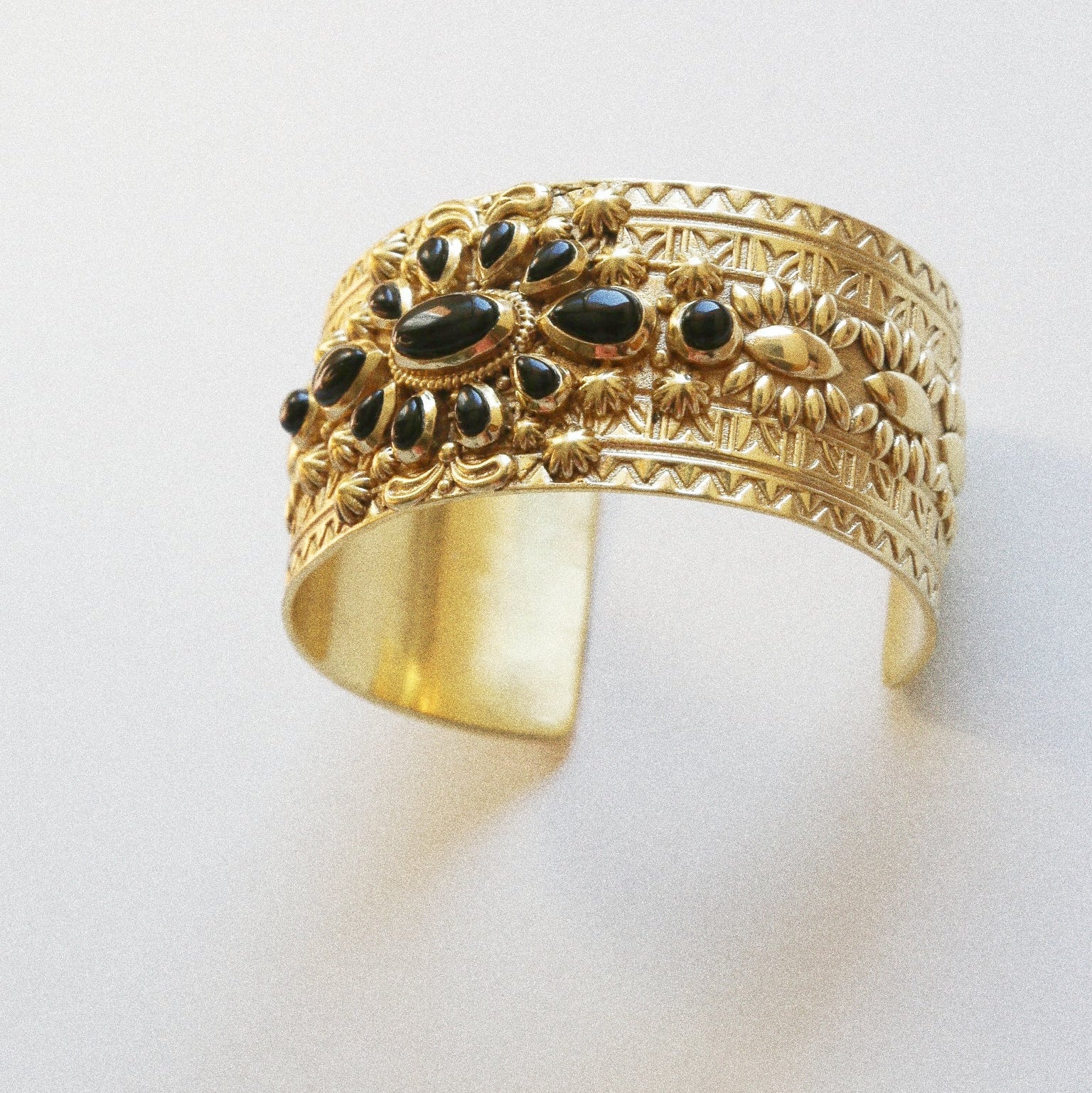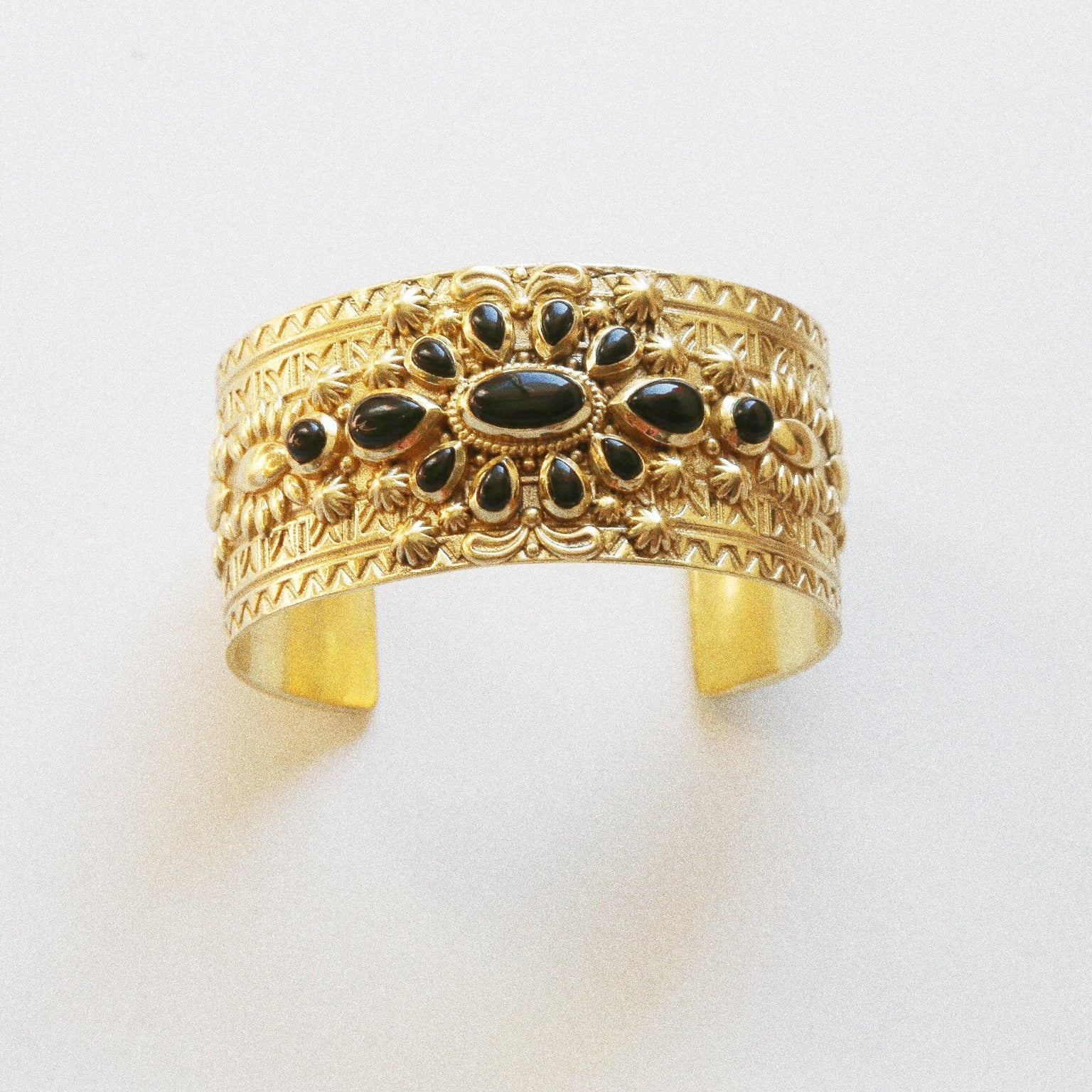 đ€ Manchette Cabochons Onyx Noir â Protection & ĂlĂ©gance Mystique