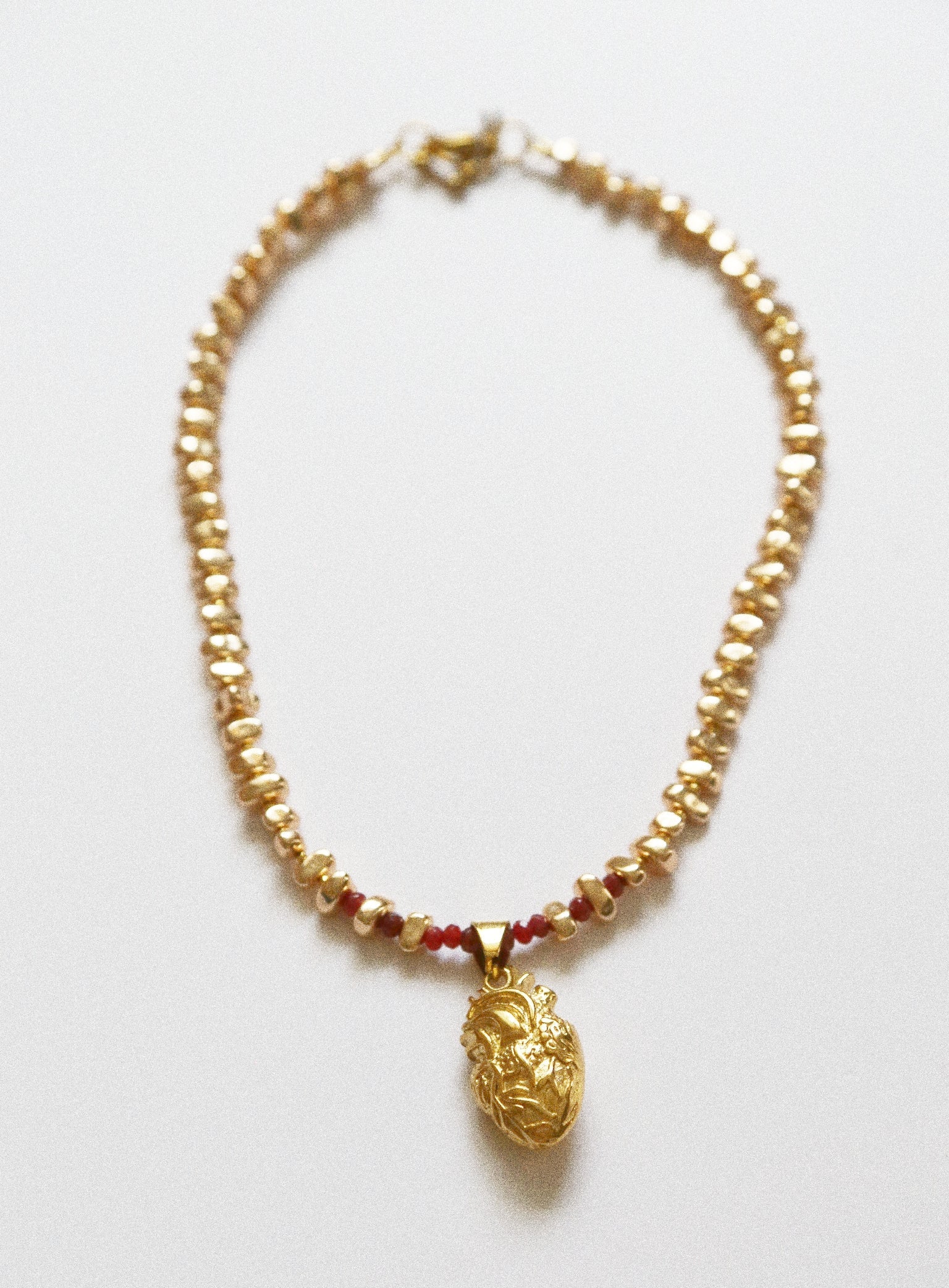 Le pendentif en forme de cœur sacré doré incarne la puissance de l’amour, la foi en soi et la beauté de la transformation.
