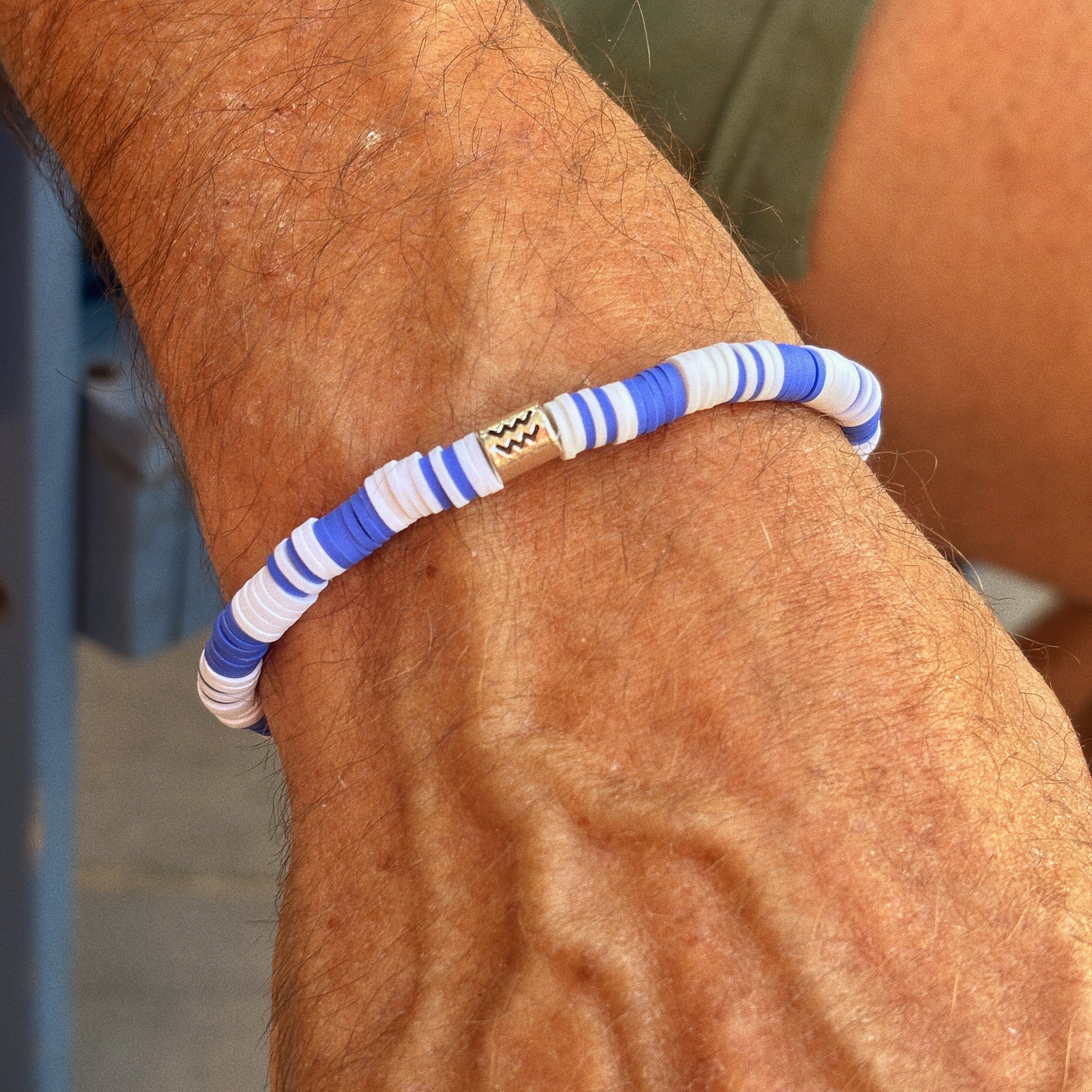 Exprime ta singularité avec notre collection de bracelets astro pour homme, imaginée pour l’été. Chaque pièce est fabriquée à la main avec des perles heishi en vinyle montées sur un fil élastique résistant, pour un confort optimal et un style affirmé.